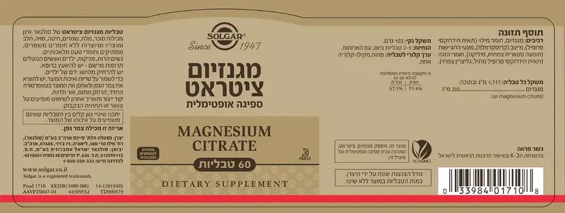 מגנזיום ציטראט סולגאר / Magnesium Citrate